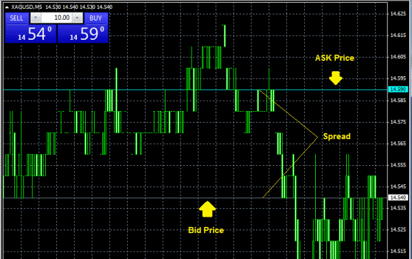 The MT4 chart will display the BID price by default which is the (SELL) price. When you enter a short position, in order for you to close this trade you need to (BUY) or go long. Therefore, the ASK price or BUY price is required which is not reflected on the chart. Another way to think of this is the BID price or chart price plus the spread.
